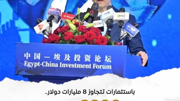 يعلن المهندس حسن الخطيب، وزير الاستثمار والتجارة الخارجية، خلال كلمته في منتدى الأعمال المصري – الصيني، أن هناك أكثر من 2800 شركة صينية تستثمر في مصر باستثمارات تتجاوز 8 مليارات دولار في قطاعات متعددة. كما يوضح أن هذا التوسع يعكس جهود الدولة في جذب الاستثمارات الصينية وتوسيع قاعدة الإنتاج المشترك الموجه للتصدير. وتؤكد كلمته أن الصين شريك استراتيجي في مسيرة التنمية المصرية من خلال مشاركتها في برامج رئيسية مثل العاصمة الإدارية الجديدة ومدينة العلمين الجديدة ومشروع القطار الكهربائي السريع.