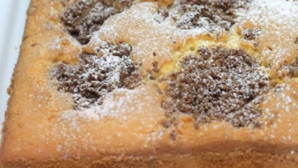 بعد الخبز وتبريد الكيك، يُحضَّر الحشو من خلال إذابة الزبدة وخلطها مع السكر البني والقرفة حتى تتجانس. تُوزع الحشوة على سطح الكيك وتترك لتتماسك قبل التقديم. يُترك الكيك ليبرد قليلًا قبل التقديم.