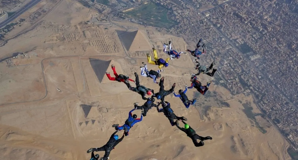 تشهد مصر ازدهاراً في القفز بالمظلات كرياضة ترفيهية تجذب ملايين عشاق المغامرة سنوياً، وتقدّم تجربة فريدة لا يمكن تحقيقها إلا في السماء فوق أقدم حضارات الأرض.
