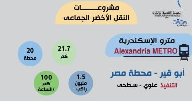 تعلن الجهة المختصة عن تنفيذ المرحلة الأولى من مشروع النقل الحضري من أبو قير إلى محطة مصر، كجزء من منظومة النقل داخل المحافظة. يمتد المشروع على طول 21.7 كيلومترًا من محطة سكة حديد أبو قير إلى محطة مصر. يشمل المشروع 20 محطة وتبلغ سرعة التشغيل 100 كيلومتر في الساعة. تُقدَّر زمن الرحلة من أبو قير إلى وسط البلد بـ25 دقيقة.