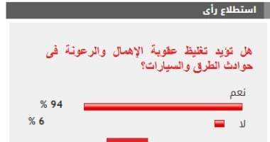 طرح استطلاعاً جديداً على قرائه حول تغليظ عقوبة الإهمال والرعونة في حوادث الطرق والسيارات. سأل الاستطلاع القراء عن مدى تأييدهم لهذا الاتجاه. أظهر الاستطلاع أن غالبية القراء أيدت تغليظ العقوبة. وحدّد الاستطلاع أن 94% من المشاركين وافقوا على التغليظ، بينما رفض 6% من المشاركين موضوع الاستطلاع.