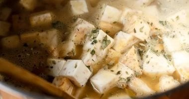 تسلق مكعبات القلقاس حتى تصبح طرية، ثم تصفّى من الماء وتخلط مع قليل من الزبدة ورشة من الأعشاب مثل البقدونس والشبت والزعتر أو الروزماري. يضيف هذا المزيج نكهة محببة تسهل قبول الأطفال للقلقاس وتخفف من طعمه القوي. يمكن تقديمه كطبق جانبي شهي مع الوجبات اليومية دون التفريط بفوائده. تعتبر هذه الطريقة خياراً بسيطاً وآمناً يساعد الأطفال على التعود على تناول القلقاس تدريجيًا.