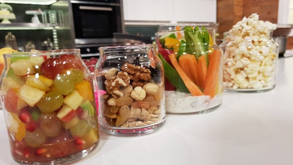 تتيح هذه الفقرة خيارات سناكس صحية للأطفال وتساعد في تقليل الاعتماد على الإندومي. تشمل الخيارات فواكه وخضروات مقطعة مثل التفاح والموز والكمثرى والعنب والمانجو إضافة إلى الجزر والخيار مع الحمص. تضم أيضاً مكسرات وبذور مثل اللوز والجوز وبذور الشيا وزبدة الفول السوداني مع الموز أو التفاح. كما تشجع على منتجات الألبان مثل الزبادي اليوناني أو جبنة القريش مع الخضروات وبسكويت القمح الكامل والفشار المنزلي.