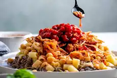 يؤكد الدكتور معتز القيعي أخصائي التغذية العلاجية أن الكشري من الأطعمة التي يعشقها الكثيرون، إضافة إلى مذاقه اللذيذ الذي يجعله وجبة مميزة في العديد من البيوت. يوضح أن مكوّناته الأساسية تشمل الأرز الأبيض والمكرونة والعدس والحمص وصلصة الطماطم والبصل المقلي. ويشير إلى أن الكشري غني بالكربوهيدرات والنشويات السريعة، ما يؤدي إلى ارتفاع سريع في السكر بعد الأكل. وعلى الرغم من وجود الألياف والبروتين النباتي في العدس والحمص، إلا أن الكمية الكبيرة من النشويات تقلل من هذا التأثير الإيجابي.