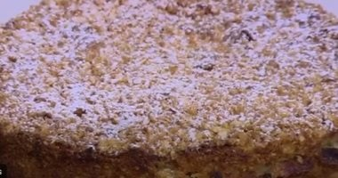 أضيفي التفاح المقطّع إلى الخليط وقلّبي بلطف قبل سكبه في القالب المجهز وسوّي وجهه. رشّي خليط الكراميل فوق سطح الكيك بالتساوي. ضعي القالب المغطّى بورق الألومنيوم في الفرن لمدة أربعين دقيقة، ثم أزيلي الورق واخبزيه لمدة ثلاثين دقيقة إضافية حتى يخرج عود الاختبار نظيفًا من الوسط. اتركيه ليبرد في القالب لمدة 15 دقيقة، ثم انقليه إلى طبق التقديم ورشي سكر بودرة وقدميه مع الكريمة المخفوقة أو الآيس كريم حسب الرغبة.