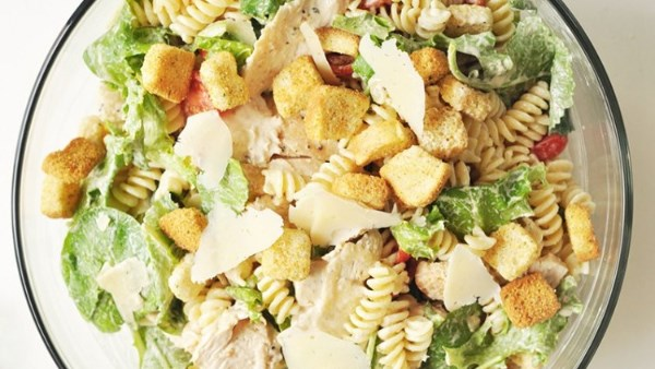 يقدّم طبق سلطة سيزر بالمكرونة والدجاج تركيبة متوازنة من الدجاج المتبل والمكرونة الناضجة والخس المقرمش مع صوص سيزر كريمي. يُعتبر خياراً مناسباً لغداء أو عشاء خفيف، حيث يجمع بين القوام المتنوع والنكهات الغنية. تضيف قطع الخبز المحمص قرمشة نهائية تُبرز تماسك المكونات وتكمل الطعم. تُهيّأ الطبق بسرعة ويصلح للتقديم مباشرةً أو كطبق جانبي في المناسبات.