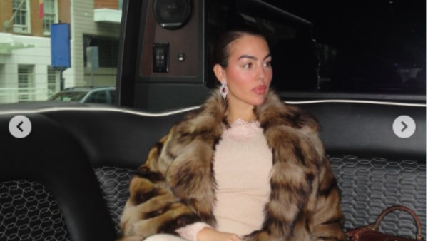 خطفت جورجينا رودريجيز الأنظار بإطلالة أنيقة خلال ظهورها الأخير. اعتمدت توباً باللون البيج وبنطلون من نفس اللون بلا نقوش أو تطريز. أضفى معطف فرو طويل بدرجات البيج لمسة فاخمة على التنسيق. واكتملت الإطلالة بارتداء بوت طويل بني وحقيبة يد متوسطة الحجم مطابقة للون الملابس.