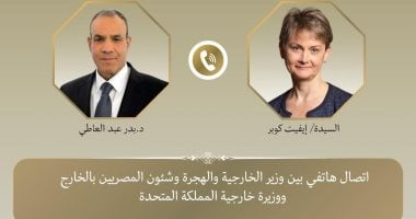 أعلن وزير الخارجية بدر عبد العاطي خلال اتصال هاتفي مساء يوم الخميس مع نظيرته البريطانية إيفيت كوبر عن أهمية مواصلة البناء على التطور الإيجابي للعلاقات المصرية البريطانية وتطويرها إلى آفاق أرحب في المجالات السياسية والاقتصادية والتجارية. وأكد خلال الاتصال أن تعزيز العلاقات سيشمل زيادة حجم الاستثمارات البريطانية في مصر خلال السنوات القادمة، خصوصاً مع تحسن مناخ الاستثمار في مصر نتيجة الإصلاحات الاقتصادية والهيكلية التي أُنجزت خلال السنوات الأخيرة. وأوضح أن الجهود ستتركز أيضاً على خفض التصعيد وتخفيف التوتر في المنطقة من خلال اتصالات دبلوماسية نشطة، مؤكداً أهمية التوصل إلى تسوية توافقية بشأن الملف النووي الإيراني تعالج شواغل كافة الأطراف. وشدد على ضرورة تضافر الجهود الإقليمية والدولي في هذه المرحلة الدقيقة لصون الأمن الإقليمي وتحقيق مصالح شعوب المنطقة في الاستقرار والتنمية.