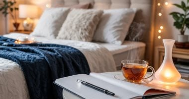 ابدأ قبل النوم بمشروب دافئ خالٍ من الكافيين مثل البابونج أو الحليب الدافئ لتهدئة الأعصاب. مارس تمارين التنفس البسيطة أو جلسة تأمل قصيرة قبل النوم، فالتنفس العميق يساعد على تهدئة الدماغ والجسم. خصص وقتًا لقراءة صفحات من كتاب خفيف وملهم، لتخفيف ازدحام الأفكار وتسهيل الانتقال إلى حالة من السكون. راقب استخدام الأجهزة الإلكترونية قبل النوم وابتعد عنها قدر الإمكان لتخفيف تحفيز الدماغ.