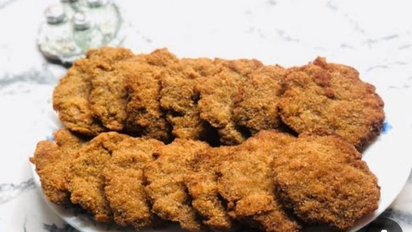 تحضير الطبقة الخارجية والتغطية: اخفقي البيضتين مع الملح والفلفل الأسود. اغلفي كل شريحة بوفتيك أولًا بالدقيق، ثم بالبيض، وأخيرًا بالبقسماط. تكرار هذه الخطوة يضمن تغطية متساوية لجميع الشرائح.