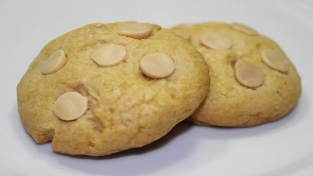 ضعي المكونات التالية: 2 كوب دقيق، 1 ملعقة صغيرة بيكنج باودر، رشة ملح، 1/2 كوب زبدة طرية، 3/4 كوب سكر أبيض، 1/4 كوب سكر بني، 1 بيضة كبيرة، 1 ملعقة صغيرة فانيليا، 1 كوب شوكولاتة بيضاء مقطعة أو حبيبات.