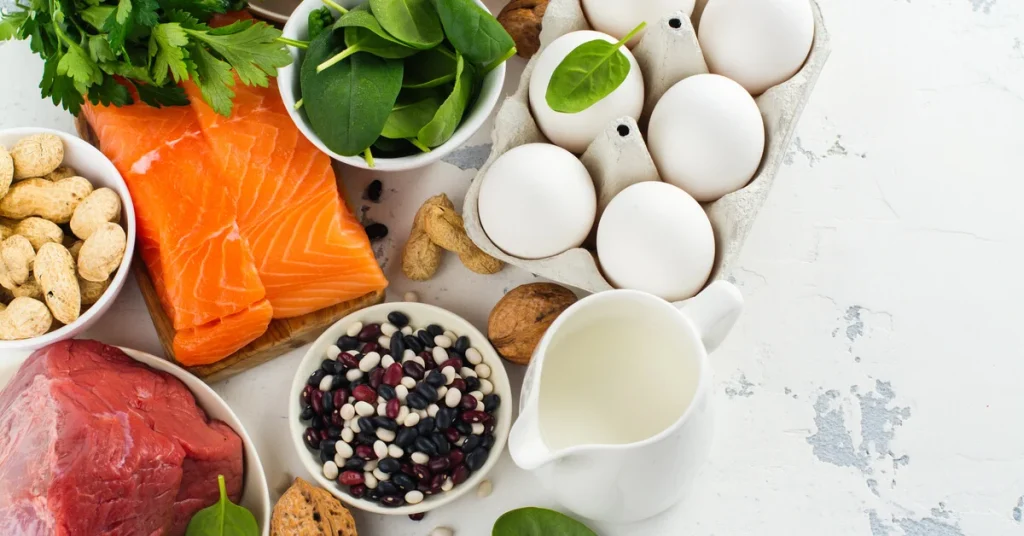 ابدأ اليوم الأول بالفطور بتناول بيضتين مسلوقتين وشريحة توست من حبة كاملة مع حفنة من اللوز أو الجوز وكوب شاي أخضر أو شاي نعناع، ثم غداؤك صدر دجاج مشوي مع أرز بني أو كينوا وسلطة خضراء بزيت الزيتون وعصير ليمون، وأنهِ اليوم بعشاء خفيف من زبادي طبيعي مع ثمرة فاكهة مثل كيوي أو برتقال وملعقة بذور شيا أو بذر كتان.