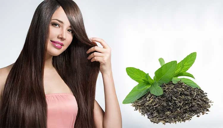 اخلط ملعقتين كبيرتين من الشاي الأخضر المغلي والمبرد مع ملعقة كبيرة من زيت جوز الهند أو زيت الزيتون، ودلك فروة الرأس بالخليط لمدة خمس دقائق، ثم اتركه 30–60 دقيقة قبل غسل الشعر كالمعتاد.