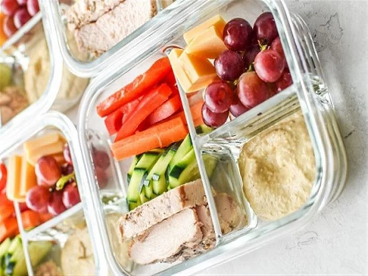 قطع خضار مثل خيار، جزر وكرفس مع حمص مهروس منزلي يشكلان وجبة خفيفة مغذية وسهلة للأطفال.