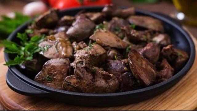 اخلط نصف كيلو كبدة دجاج منظفة ومقطعة شرائح رفيعة مع عصير ليمونة وملعقة صغيرة كمون وملعقة صغيرة بابريكا مدخنة ونصف ملعقة صغيرة كزبرة ناشفة ورشة ملح ورشة فلفل واتركها 20 دقيقة لتتشرب النكهة.