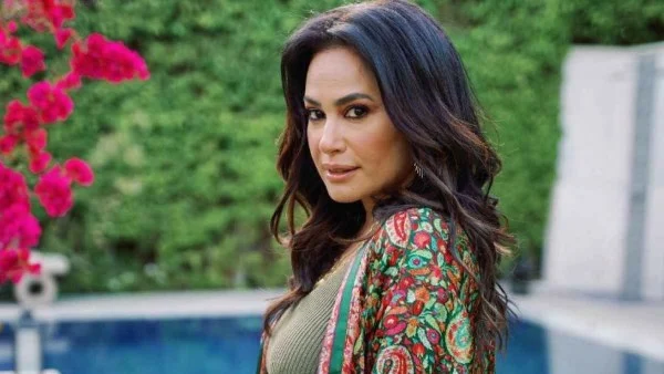 واختارت هند بلوزة حريرية فاتحة مطبّعة بنقوش ناعمة باللون البيج الفاتح، وزيّنتها بوشاح رقيق متدلٍ أضاف لمسة من الرقي والأنوثة، لتبدو الإطلالة أكثر انسيابية ونعومة.