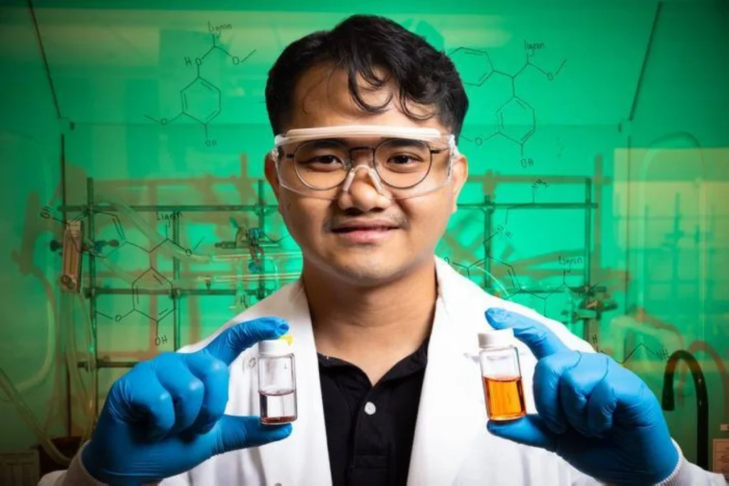 يعتمد الحل على استخدام اللجنين، وهو بوليمر نباتي يُنتَج كناتج ثانوي لصناعة الورق واللب، ويمتاز بتكلفة منخفضة وتوفر كبير وإمكانيّة إعادة استخدامه في أنظمة الصباغة وتصفية المياه.