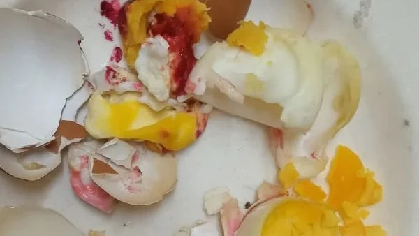 انتشرت خلال الساعات الأخيرة على مواقع التواصل صور لبيض مسلوق يظهر في صفاره بقع حمراء أو دم متجلط، مع ادعاءات بأنه بيض صيني مصنع يحتوي على مواد كيميائية خطرة، ويتحول لونه إلى الأحمر عند تعريضه للضوء.