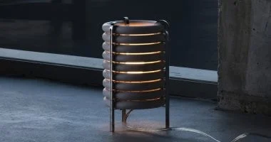 يتكوّن المصباح من 9 حلقات متراصة تفصل بينها فجوات دقيقة تسمح بمرور الضوء. وتُثبت الحلقات بأرجل من الفولاذ المقاوم للصدأ، ما يمنح المصباح مظهراً عصرياً ومتيناً. لا يوجد مصباحان متطابقان؛ يحمل كل واحد بصمة الاستخدام اليومية للقطارات مع أن الحلقات خضعت لعملية النفخ الرملي لإزالة اللمعان وكشف الخدوش. تؤكد هذه التفاصيل أن كل مصباح يمثل قطعة فريدة ويحمل جزءاً من تاريخ رحلات طوكيو إلى المنازل.