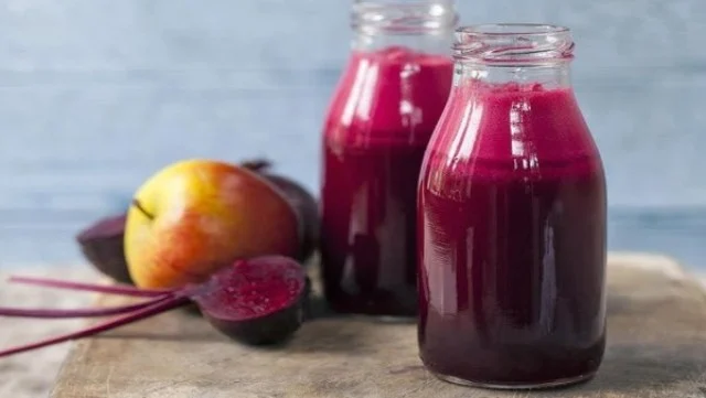 يقدم الوصف مكونات بسيطة لتحضير عصير البنجر. تتضمن المكونات حبة بنجر متوسطة الحجم، وتفاحة أو برتقالة، ونصف ليمونة، وكوب ماء بارد أو مكعبات ثلج، إضافة اختيارية هي ملعقة صغيرة من العسل للتحلية. إذا رغبتِ بطعم أقل قوة، يمكن سلق البنجر لمدة عشر دقائق قبل الخلط.