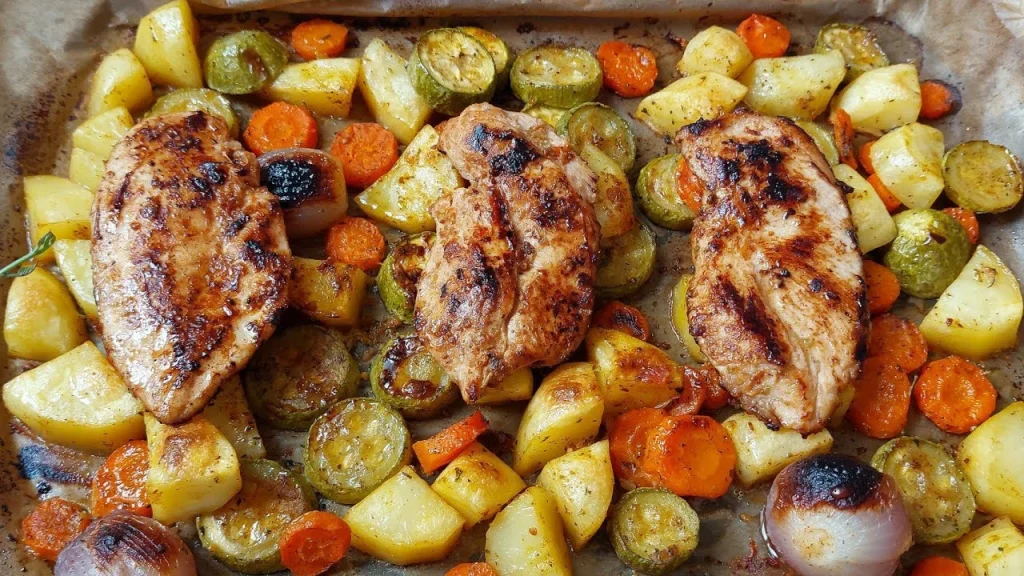 تُقدَّم الوصفة وهي ساخنة مع توزيع القوام المتوازن بين الدجاج المتبّل والخضار المشوّح، ما يعزز الطعم بشكل واضح. تُظهر النتيجة أن التتبيلة البسيطة والحرارة المتوازنة تمنحان وجبة خفيفة ومغذية في آن واحد. يمكن تعديل كمية الملح والفلفل أو إضافة بهارات إضافية وفق الرغبة لتناسب الذوق الشخصي.