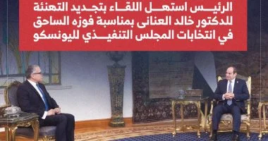 استقبل السيد الرئيس عبد الفتاح السيسي اليوم الدكتور خالد العناني، المدير العام المنتخب لمنظمة اليونسكو، وذلك بحضور الدكتور بدر عبد العاطي، وزير الخارجية والهجرة وشؤون المصريين بالخارج. وصرّح السفير محمد الشناوي، المتحدث الرسمي باسم رئاسة الجمهورية بأن الرئيس هنأ الدكتور العناني بنجاحه في الانتخابات وتوليه منصب مدير عام المنظمة نتيجة تأييد 55 دولة من أصل 57 دولة مشارِكة في المجلس التنفيذي. وأكد الرئيس أن هذا الفوز يمثل إنجازاً تاريخياً يعكس المكانة الراسخة لمصر على المستويين الإقليمي والدولي وإسهاماتها الفكرية والحضارية. كما أعرب الرئيس عن تقديره الكبير للدول التي منحت مرشح مصر دعمها ووقوفها بجانب مصر في هذا المسار.