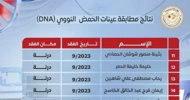 وأفادت التقارير بأن التطابق الجيني شمل 20 حالة من جثث مجهولة الهوية بعد تحليل DNA، وهو ما يعزز الجهود المستمرة لمعرفة الهوية. وأشار إلى وجود مواطنين مصريين ضمن الحالات هما مصطفى جمال الدين خاطر وأحمد سمير كمال السيد. وأكد أن العائلات لها الحق في معرفة مصير ذويهم وأن الهيئة ستواصل العمل على هذا الملف بدون تقصير حتى تعود الأسماء إلى أصحابها. وتؤكد الهيئة التزامها بنقل المعلومات للعائلات بشكل مستمر وواضح وتقديم الدعم اللازم حتى الوصول إلى نتائج نهائية موثوقة.
