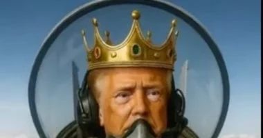 أعلن ترامب عن مقطع فيديو مولَّد بالذكاء الاصطناعي يظهره وهو يحلِّق فوق حشد من المتظاهرين في ميدان تايمز سكوير بنيويورك، ثم يلقي عليهم سائلًا بنيًا. يظهر في الفيديو أن مدة المقطع 20 ثانية وأنه نُشر على حساباته الشخصية والحكومية على منصات التواصل الاجتماعي. وتُرافق اللقطة خلفية موسيقية بعنوان “منطقة الخطر” للمغني كيني لوجينز. فُسِّر هذا الفيديو على أنه محاولة للسخرية من مظاهرات أمريكا.